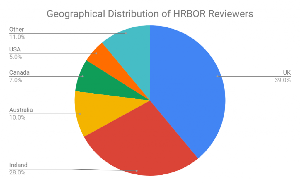 However, we do realise there is a bias to the global north for our reviewers, as seen in Figure 1, and we are continuing to encourage authors to suggest reviewers from across the globe. Not only will this achieve a more complete peer review experience for our articles, but it also ensures the high quality research published on HRB Open Research has international reach.